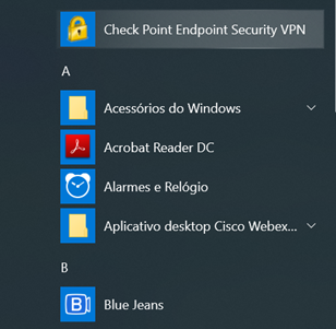 Na barra de tarefas do Windows procurar pela instalação do cliente da checkpoint conforme imagem.